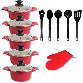 Jogo de Panelas Vermelha Marmorizada Javali AALT 16 A 24Cm