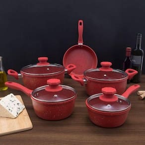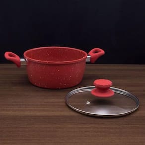 O Jogo de Panelas antiaderentes com revestimento antiaderente granito interno e externo 5 Peças Angra – vermelhoEste jogo de panelas é indicado para fogões de Indução magnética – sendo um produto Top de linha no seu segmento.De beleza singular, as panelas Angra acompanham tampas em vidro temperado e cabos em branquelite com revestimento em silicone.Elaborada em alumínio fundido com espessura grossa de parede 3 milímetros, revestimento antiaderente granito e fundo de indução extra produzido em material magnético.Alta performance: Cozinha os alimentos em menor tempo devido a sua melhor distribuição de transferência de calor;Antiaderência e segurança: Menor utilização de óleo no preparo dos alimentos tornando-os mais saudáveisSelo "A" de aderência certificada INMETRO, conferindo uma alta performance;Conveniência: Sua manutenção é prática pois não adere sujeira. Pode ser lavada em máquina de lavar louças.O processo de elaboração da panela é feito à base de água e não tóxico. Livre de PFOA, PTEF, Chumbo e cádmio.Indicamos o uso de utensílios de silicone para não danificar o produto.O jogo é composto por:1 caçarola de 24cm1 caçarola de 22cm1 panela de 18cm1 panela de 16cm1 frigideira de 22cmMarca - MeridionalModelo: AngraCor: vermelho