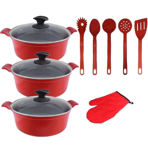 Jogo de Panelas Vermelho Cerâmica Com Talher Javali AAL 26A30