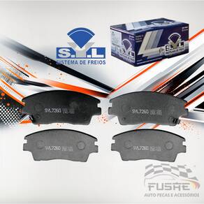 Jogo de pastilhas de freio dianteiras SYL7260, um componente essencial para a reposição no sistema de freios. Esta peça é projetada para ser compatível com o Kia Sportage 2.0 a partir do ano de 2017 e com o Hyundai New Tucson 1.6 16V, também a partir de 2017 em diante. Confirma a aplicação nas rodas dianteiras para garantir o desempenho de frenagem adequado nestes modelos específicos.