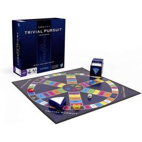 O jogo Trivial Pursuit Master Edition adiciona uma reviravolta moderna ao jogo clássico que você ama. Vai desafiá-lo e encher sua cabeça com fatos fascinantes. Vá em frente, impressione seus amigos e tenha algumas risadas ao mesmo tempo! Se você está de olho no mundo ao seu redor, o jogo Trivial Pursuit Master Edition é para você. O jogo de curiosidades inclui 494 cartas com 2.950 perguntas ao todo. TRIVIAL PURSUIT, o logotipo associado, o design distinto do tabuleiro de jogo, cartas de trivia, tokens de jogo e cunhas de pontuação são marcas comerciais da Hasbro.