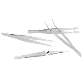 Esse Kit foi desenvolvido para manipulação de pequenas peças. Conta com 4 pinças em formatos distintos, o que possibilita manusear vários objetos diferentes.