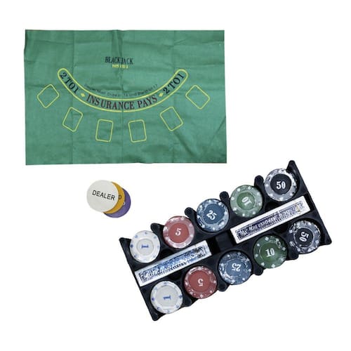 JOGO PARA POKER 200 FICHAS NUMERADAS NA LATA 02 BARALHO E TOALHA - IM42055.