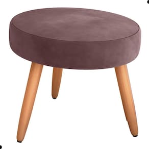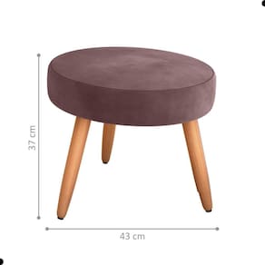 O tecido do puff é em veludo. Suporta até 90kg, espuma D20 assento