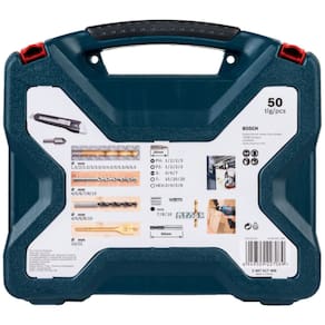 Jogo de Pontas e Brocas Titânio X-Line 50 Peças - 2607017406000 - BOSCH Descrição:O Kit de Pontas e Brocas em Titânio X-Line Bosch é um produto completo e ideal para quem busca praticidade para executar diferentes tipos de trabalho. Inclui uma variedade de pontas e brocas, além de diversos acessórios que auxiliam em aplicações de parafusamento, perfuração e fixação. O design das Pontas foi desenvolvido para evitar o desgaste da cabeça dos parafusos trazendo maior firmeza durante as aplicações, e possuem o encaixe em formato hexagonal que evita o deslizamento na ferramenta. Características:- Referência: 2607017406-000- Cor: Azul- Quantidades de peças: 50 Uso indicado:- Pode ser utilizado em diversas aplicações desde reparos, instalações e montagens, até pequenos trabalhos em obras, serralherias e marcenarias. Inclui: - O Kit possui um variado portfólio de brocas com diferentes diâmetros, sendo as de aço rápido em titânio para aplicações em metal, brocas com ponta de metal duro para perfurações em alvenaria, brocas de três pontas para madeira e as brocas planas em titânio que permitem perfurações em maiores diâmetros nos diferentes tipos de madeira. Além de acompanhar uma maleta robusta que facilita a armazenagem, transporte e acesso de todo o conteúdo de forma bastante organizada.