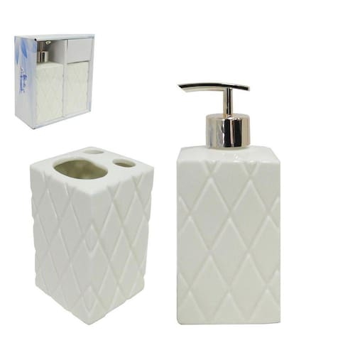 Jogo para banheiro de porcelana quadrado relevo branco com 2 pecas na caixa
