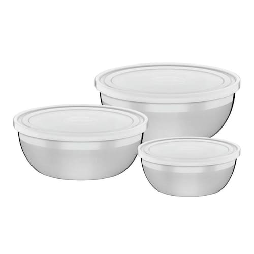 Jogo de Potes Aço Inox 3 Pçs com Tampa Plástica Freezinox Podem ser lavados diariamente na máquina de lavar louças. Conteúdo: 1- Pote com tampa plástica 18cm-1,6L 1- Pote com tampa plástica 20cm-2,2L 1-pote com tampa plástica 22cm-2,9L Especificações: Marca: Tramontina Modelo: Potes de Aço Inox com Tampa de Plástico Linha: Freezinox Contém: 3 Peças Material: Aço Inox e Plástico : 3 meses 7891116080689 Marca: Não Informado