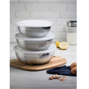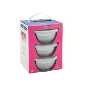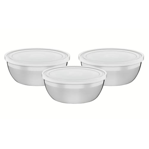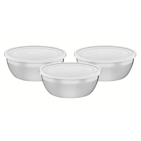 03 Potes Redondos com Tampa (Compr. X Larg. X Alt.): 15 x 15 x 6,7 - Capacidade 0,8 litros cada.