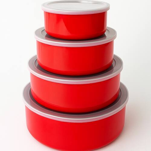 Dimensões e Capacidades de Cada Pote: Pote 1: 4 cm (A) x 10 cm (D) – Capacidade: 250 ml – Peso: 35g Pote 2: 4,5 cm (A) x 12 cm (D) – Capacidade: 450 ml – Peso: 50g Pote 3: 5 cm (A) x 14 cm (D) – Capacidade: 700 ml – Peso: 60g Pote 4: 6 cm (A) x 16 cm (D) – Capacidade: 1 L – Peso: 80g Pote 5: 6,5 cm (A) x 18 cm (D) – Capacidade: 1,4 L – Peso: 99g