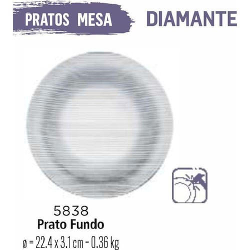 Jogo de prato diamante 04 pratos vidro fundos sopa caldos Prato diamante de vidro fundo 23cm sopa caldos Jogos de jantar, para dar um toque de sofisticação e praticidade para seu dia a dia e seus eventos. Produtos exclusivos da nadir figueiredo, conhecido pela alta resistência tanto no restaurante ou em casa.Faça sua escolha para degustar os melhores momentos. A nadir figueiredo oferece uma linha de pratos para cada tipo de degustação e momento. Temos diversas modelos para atender a sua necessidade, temos preços especiais, pra embalagens de 6, 12 ou 24 copos. Temos pratos com peso controlado, para self-service Limite de envio 48 peças, em razão do peso