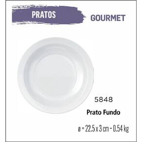 Jogo de prato gourmet 06 pratos fundo - 22cm branco Prato fundo caldo sopa gourmet 22cm vidro branco