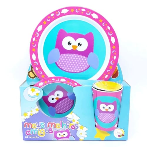 Agora a hora da refeição vai ficar ainda mais divertida com esse lindo kit de Pratos e Copo de Corujinha. Meus melhores amigos.
