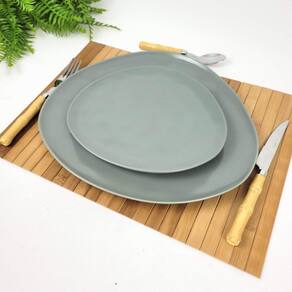 Jogo de prato jantar e sobremesa verde 32/23cm cerâmica 2pc Desfrute de refeições elegantes: jogo de pratos de jantar e sobremesa em cerâmica esmaltada com design orgânico em cores neutras inigual decor