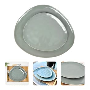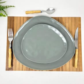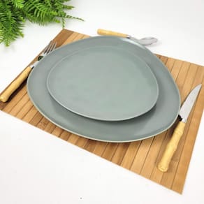 Jogo de prato jantar e sobremesa verde 32/23cm cerâmica 2pc Desfrute de refeições elegantes: jogo de pratos de jantar e sobremesa em cerâmica esmaltada com design orgânico em cores neutras inigual decor