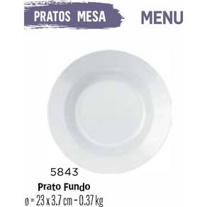 Jogo de prato menu 04 pratos fundos - 23cm cerâmica branca Prato menu fundo 23cm - cerâmica branca - caldo - sopas