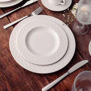 Conteúdo: 4 pratos fundos 23cm, 4 pratos rasos 27cm, 4 pratos sobremesa 21cm.