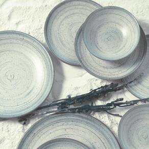 Acabamento Acetinado Premium: Cada prato exibe um sofisticado acabamento acetinado que não apenas realça a beleza natural da cerâmica mas também oferece uma durabilidade excepcional.