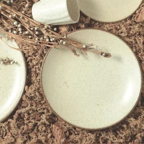 Acabamento Acetinado Premium: Cada prato exibe um sofisticado acabamento acetinado que não apenas realça a beleza natural da cerâmica mas também oferece uma durabilidade excepcional.
