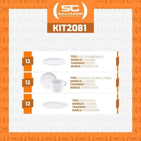 - Tipo: Prato Raso, Prato Sobremesa e Conjunto de Xícara e Pires