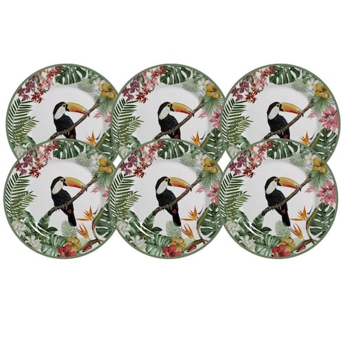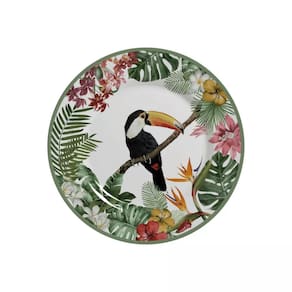Transforme a apresentação das suas sobremesas com o Kit de Pratos de Sobremesa Linha Paradiso da Alleanza. Com ilustrações vibrantes de folhagens e flores, além de uma arara em destaque, este conjunto traz um toque de natureza e elegância à sua mesa. Composição do Kit: 6 Pratos de Sobremesa de 21cm de diâmetro Características do Produto: Material Durável: Produzido em cerâmica feldspática branca, conhecida pela alta resistência, garantindo qualidade e longevidade. Decoração Tropical: Ilustrações detalhadas em um processo digital, com temas de folhagens e flores, perfeitas para quem busca sofisticação com um toque natural. Tamanho Ideal: Com 21cm de diâmetro, é ideal para servir sobremesas e pequenas porções de forma charmosa. Praticidade: Pode ser utilizado em micro-ondas e lava-louças, facilitando o uso no dia a dia. Cuidados Especiais: Produto não refratário, não indicado para uso em forno. Observações: Por se tratar de um produto artesanal e decorado digitalmente, podem ocorrer pequenas variações de tonalidade, cor e brilho, tornando cada peça única. Este kit é perfeito para quem deseja uma mesa tropical e sofisticada, acrescentando um toque vibrante e elegante em cada refeição.