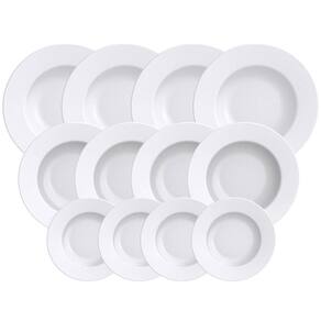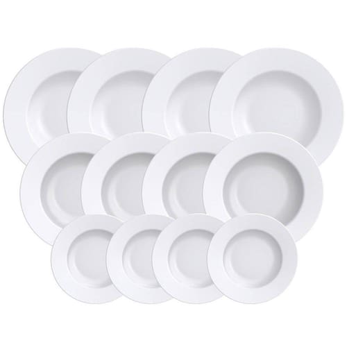 Garantia: 90 dias / Peso: 6,248kg / Cor predominante: branco / Referência: 7908538103473 Dimensões do prato de sobremesa: 21cm (D) x 2cm (A); Dimensões do prato fundo: 23cm (D) x 3,3cm (A); Dimensões do prato raso: 28cm (D) x 2,5cm (A); Material: porcelana.