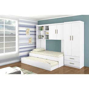 Jogo de Quarto Chiara 4 Peças - Roupeiro 2 portas, Módulo Aéreo e Cama com Auxiliar - Phoenix Baby - Branco
