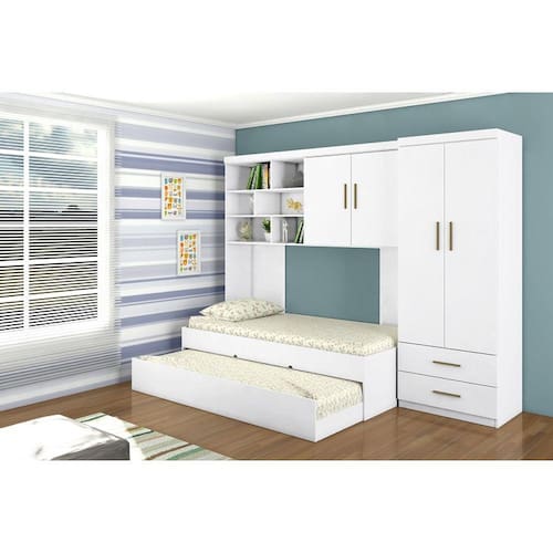 Se você procura modernidade, praticidade e segurança na hora de montar o quarto do seu filho, o quarto infantil/juvenil Chiara oferece aquele toque todo especial ao ambiente, adicionando muito espaço para organização e praticidade no dia-a-dia. Produto composto por guarda-roupa, módulo aéreo, cama e cama auxiliar.