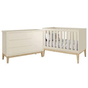 Jogo de Quarto Classic Cômoda com Porta e Berço com Pés Madeira Natural - Reller Móveis - Bege