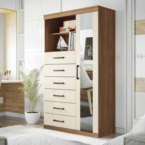 A Multi Cômoda conta com seis gavetas amplas para organizar todas suas roupas, possui quatro prateleiras, seis nichos e uma porta com espelho.