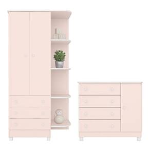 Jogo De Quarto Doce Sonho Guarda Roupa 2 Portas E Cômoda 1 Porta Rosa Acetinado Com Pés - Qmovi Rosa Acetinado Jogo de Quarto Infantil Doce Sonho Guarda Roupa 2 Portas e Cômoda 1 Porta com Pés - Qmovi O Jogo de Quarto Infantil Doce Sonho conta com design clean e delicado, perfeito para chegada do bebê. Ele é composto pelo Guarda-Roupa Doce Sonho com amplo espaço interno, e pela Cômoda Doce Sonho que é um ótimo complemento na hora de organizar o ambiente, tornando seu dia a dia mais prático. Guarda Roupa Infantil 2 Portas e 3 Gavetas Doce Sonho com Nicho e Pés - Qmovi - Estrutura em MDP - Pintura UV atóxica - 2 Portas - 3 Gavetas - Corrediças metálicas - Puxadores em forma de estrela - Prateleiras - Cabideiro - Pés em PVC - Maior organização e praticidade