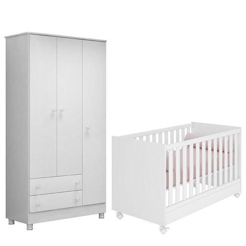 Jogo De Quarto Doce Sonho Guarda Roupa 3 Portas E Berço Mini Cama Branco Com Rodízio - Qmovi Branco Jogo de Quarto Infantil Doce Sonho Guarda Roupa 3 Portas e Berço Mini Cama com Rodízio - Qmovi Com o Jogo de Quarto Infantil Doce Sonho você terá maior funcionalidade e elegância no quarto do bebê. Ele conta com Guarda-Roupa com amplo espaço para guardar e organizar os pertences de forma funcional para o dia a dia. Seus puxadores exclusivos em forma de estrela vão transformar o ambiente deixando-o mais divertido e charmoso. Já o Berço Mini Cama foi projetado especialmente para oferecer conforto e ao bebê. Com um design clássico e delicado, ele garante beleza e aconchego para o ambiente. Guarda Roupa Infantil 3 Portas e 2 Gavetas Doce Sonho com Pés - Qmovi - Estrutura em MDP - Pintura UV atóxica - 3 Portas - 2 Gavetas - Corrediças metálicas - Puxadores em forma de estrela - Prateleiras - Cabideiro - Pés em PVC - Maior organização e praticidade