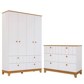 Jogo de Quarto Infantil Biscoito Guarda Roupa e Cômoda 6 Gavetas - Permóbili Baby - Branco
