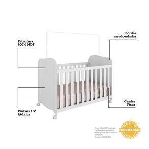 O Jogo de Quarto Infantil com Cômoda Smim e Berço Uli da Móveis Peroba é a escolha ideal para quem busca funcionalidade e segurança no dia a dia com o bebê. A cômoda conta com 3 gavetas amplas com corrediças telescópicas, puxadores pontuais em plástico e tampo com perfil PVC, oferecendo ótimo espaço para organização. Já o berço Uli, certificado pelo INMETRO, possui estrutura em MDF, 3 níveis de regulagem do estrado, rodízios com trava e suporte para mosquiteiro, proporcionando conforto e praticidade. Um conjunto completo com design encantador e acabamento de qualidade.