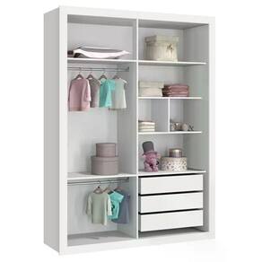Jogo De Quarto Infantil Com Guarda Roupa Prince E Bicama Nuth Branco Fosco - Reller Móveis Branco Fosco Jogo de Quarto Infantil com Guarda Roupa Prince e Bicama Nuth - Reller Móveis Proporcione um ambiente lindo e aconchegante para seu filho com o Jogo de Quarto da Reller. Ele conta com o Guarda-Roupa Prince, um móvel clean com espaço ideal para organizar roupinhas e acessórios. E a Bicama Nuth, perfeita para acompanhar a criança até a fase adolescente. Além de já vir acompanhada com uma cama auxiliar com rodízios, tende a incentivar o desenvolvimento e independência dos pequenos. Transmite modernidade e conforto para o ambiente. É uma ótima opção para quem não abre mão da praticidade. Guarda Roupa Infantil Prince 2 Portas de Correr - Reller Móveis - 100% MDF - 2 Portas - 3 Gavetas - 7 Divisões internas - Cabideiro metálico - Corrediças telescópicas - Puxadores em alumínio - Maior Organização, espaço e praticidade - Sistema de trilhos diferenciado para as portas - Acabamento UV (Atóxico)