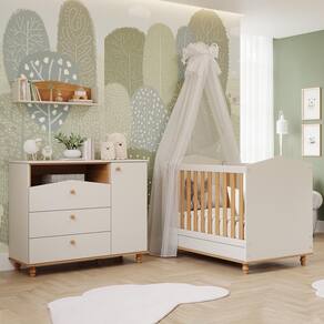 Tonalidade: Multicolorido | Produto: Conjunto de Quarto | Regulamentado pelo Inmetro: Sim | Certificação do Inmetro: 03295/2021 | Fabricante: Permóbili Baby Cor: Off White/Nature