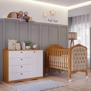 Jogo de Quarto Infantil Cômoda e Berço Harmonia com Capitonê - Permóbili Baby
