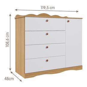 Dimensões: Tamanho da Cômoda (L x A x P): 119,5 x 108,6 x 48 cm Tamanho do Berço (L x A x P): 85 x 118 x 135 cm