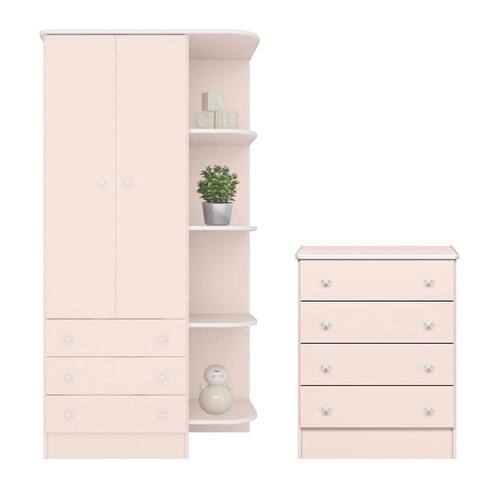 Guarda Roupa Infantil 2 Portas e 3 Gavetas Doce Sonho com Nicho - Qmovi Estrutura em MDP Pintura UV atóxica 2 Portas 3 Gavetas Corrediças metálicas Puxadores em forma de estrela Prateleiras Cabideiro Maior organização e praticidade