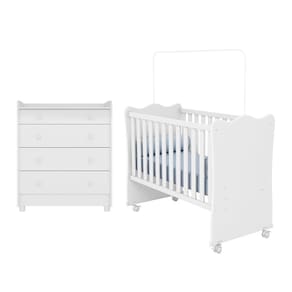 Jogo De Quarto Infantil Doce Sonho Cômoda Trocador E Berço Branco Com Rodízio - Qmovi Branco