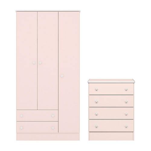 Jogo de Quarto Infantil Doce Sonho Guarda Roupa 3 Portas e Cômoda 4 Gavetas - Qmovi Com o Jogo de Quarto Infantil Doce Sonho você terá maior funcionalidade e elegância no quarto do bebê. Ele conta com Guarda-Roupa e a Cômoda Doce Sonho com amplo espaço para guardar e organizar os pertences de forma funcional para o dia a dia. Seus puxadores exclusivos em forma de estrela vão transformar o ambiente deixando-o mais divertido e charmoso.