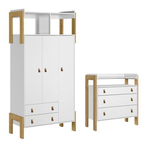 Dimensões: Tamanho do Guarda-Roupa (L x A x P): 97 x 191 x 45 cm Tamanho da Cômoda (L x A x P): 88,2 x 93 x 42 cm