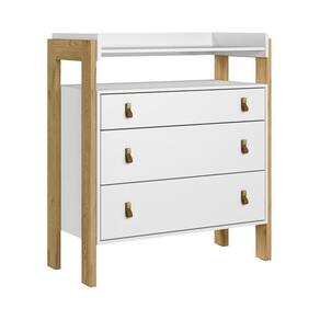 Cômoda Infantil Fantasia 3 Gavetas com Nicho - Qmovi Estrutura em MDP Pintura UV 3 Gavetas Corrediças telescópicas Puxadores inspirados no couro em TPU Nicho e prateleira Sistema antitombamento Pés em MDF de 25mm Suporta até 35Kg distribuídos