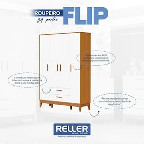 Guarda Roupa Infantil Flip 4 Portas e 2 Gavetas - Reller Móveis