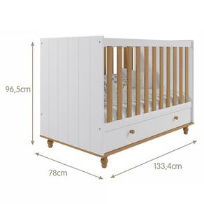 Dimensões: Tamanho do Guarda-Roupa (L x A x P): 148 x 218 x 47 cm Tamanho do Berço (L x A x P): 78 x 96,5 x 133,4 cm