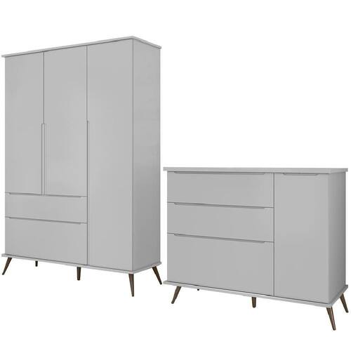 Jogo De Quarto Infantil Guarda Roupa E Cômoda 100% Mdf Melinda Cinza - Phoenix
