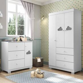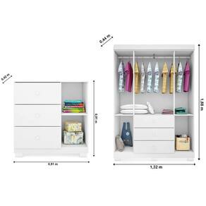 O Jogo de Quarto Infantil Guarda Roupa e Cômoda Amora P04 Branco, da Mpozenato é compacto e clássico, perfeito para o quarto dos pequenos, confira!