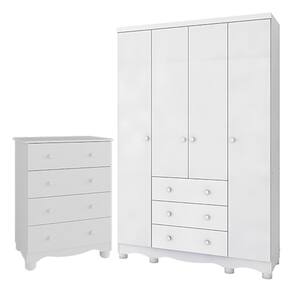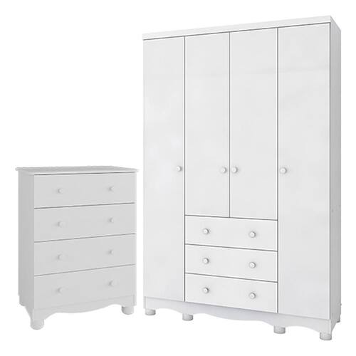 Jogo de Quarto Infantil Júnior Guarda Roupa 4 Portas e Cômoda 4 Gavetas - Móveis Peroba - Branco