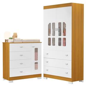 Transforme o quarto do seu bebê com o Jogo de Quarto Infantil New Katatau que une funcionalidade, e um design delicado. O guarda-roupa infantil New Katatau possui estrutura em MDF com pintura UV atóxica, 2 portas com detalhe em acrílico e dobradiças metálicas, 3 gavetas com corrediças telescópicas, puxadores em PVC, cabideiro metálico e pés em PVC, garantindo organização e durabilidade. A cômoda infantil New Katatau complementa o conjunto com 1 porta com dobradiças metálicas e detalhe em acrílico, 4 gavetas espaçosas com corrediças telescópicas, puxadores em PVC, sistema antitombamento para mais e pés em PVC. Um conjunto prático, e cheio de charme para o quartinho do bebê.