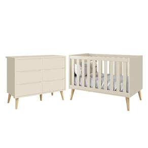 Jogo de Quarto Infantil Theo Cômoda 6 Gavetas e Berço com Pés Madeira Natural - Reller Móveis