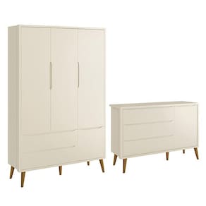 Dimensões: Tamanho do Guarda-Roupa (L x A x P): 133 x 205 x 46 cm Tamanho da Cômoda (L x A x P): 133 x 91 x 46 cm